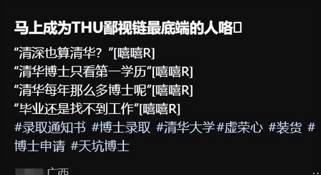 这些现象让人心里不是滋味。考上清华,靠的是真本事,哪有什么高低贵贱?可网上那些刻薄的评论,偏偏爱把人分成三六九等。女同学的自嘲发帖,其实也说出了很多清华学子的心声:努力考进顶尖学府,却还要面对莫名其妙的“等级”压力。